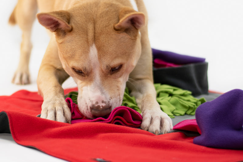 The Sniffpad Heart is made of high-quality, pollutant-free polar fleece and was lovingly handcrafted in Germany. It is washable at 40° and can be tumble dried - ideal for everyday use. Thanks to the well-thought-out hiding places, your dog will be challenged and encouraged every time. Perfect for dogs of all ages and sizes who are looking for fun and a challenge!