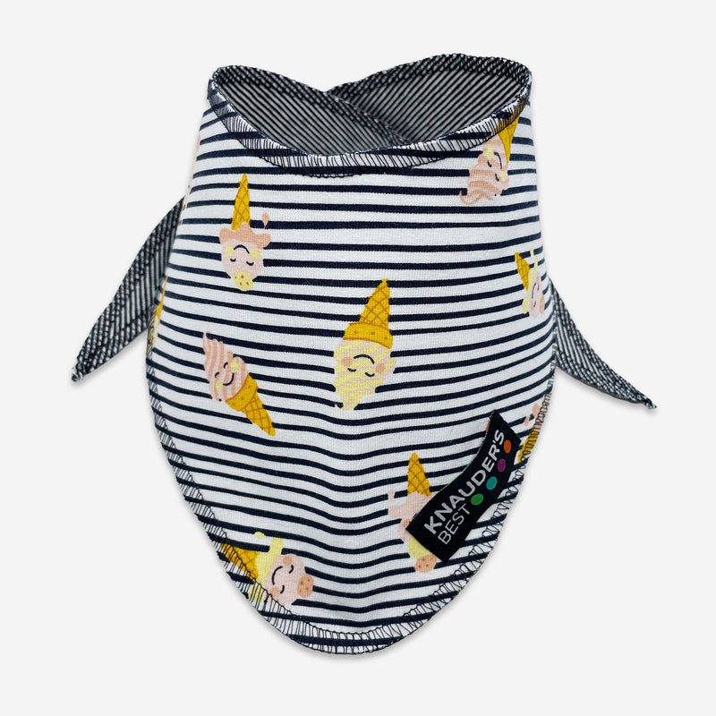 Durch das dehnbare Material und die elastischen Nähte ist das Halstuch nach einmaligem Knoten im Handumdrehen an- und wieder ausgezogen. Also das perfekte It-Piece auch für geräuschempfindliche Hunde.